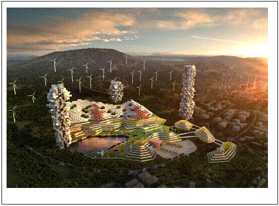 在生态节能方面,主要通过技术手段,设计了沼气制造装置,通过收集垂直农场产生的废物来制造能源,减少该区域对外来能源的依靠,通过设置一个巨大的人工湖和相应的抽水系统实现了雨水的收集和循环利用。该组成员的目标是通过一个区域的整体的规划设计带动整个城市的生态可持续发展,希望该方案为中国城中村的改造和生态发展问题提供一条解决的思路。