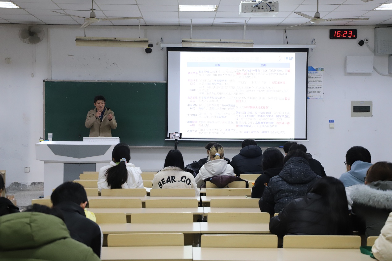 2025年12月29日,南京工业大学城乡规划专业专创融合系列讲座第五讲在笃学A楼202教室举行,南京师范大学地理科学学院教授、超图集团南京国图信息产业有限公司总规划师王亚华应邀作题为“以‘用途管制’为核心的国土空间闭环管理模式演变”的专题报告。王亚华深耕国土空间规划领域多年,兼任江苏省土地学会青年委员会副主任等多项学术职务,主持和参与了百余项实践项目,在土地规划和管理领域积累了丰富的经验。讲座由建筑学院方遥教授主持。